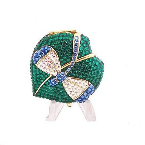 From the Estee Lauder All The Buzz collection, here is a gorgeous compact called Dragonfly (dragon fly). The lid and sides are covered with emerald colored crystals, with the dragonfly created with blue and clear crystals. This is filled and is refillable with Lucidity Translucent pressed powder in the shade 06 Transparent. It comes with a velvet pouch and a gold gift box (not the original box).